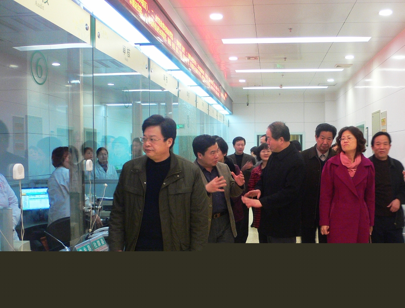 3月7日,市人大常委会主任李天岑,副主任杨德明、金星、李东武、秦俊等在卫生局局长赵玉亭、副局长桂延耀的陪同下来我院就卫生系统工作进行专题调研。李天岑一行在听取汇报后深入新病房大楼实地察看了特需病房、新生儿重症监护室、新农合办公区、静配中心等。李天岑对我院近年来的发展和取得的成绩给予充分肯定,并对今后的工作提出了具体要求和指导性建议。